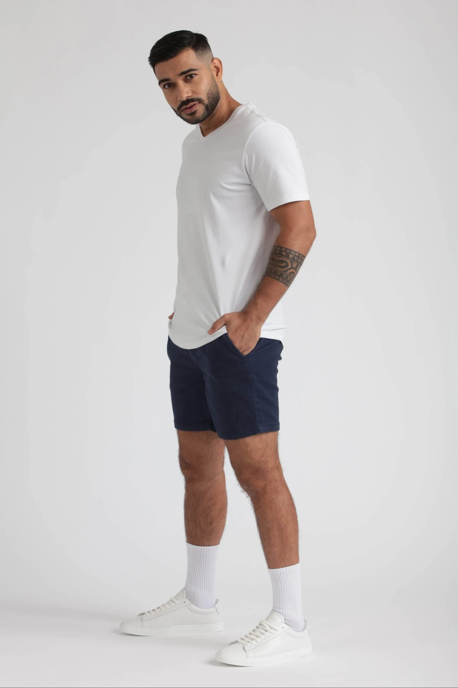 Our shorts are super soft, comfortable and stretchy for hot weather festivities. The magic fabric is light, breathable knit denim. There’s also no zipper, buttons or belt loops — pull them up and on, tighten with the drawstring (easy and convenient). We put standard chino pockets on the front and a roomy back pocket for a wallet or “the goods.” We also added a small locker loop for key-chain if you need. All adds up to JEANIUS.