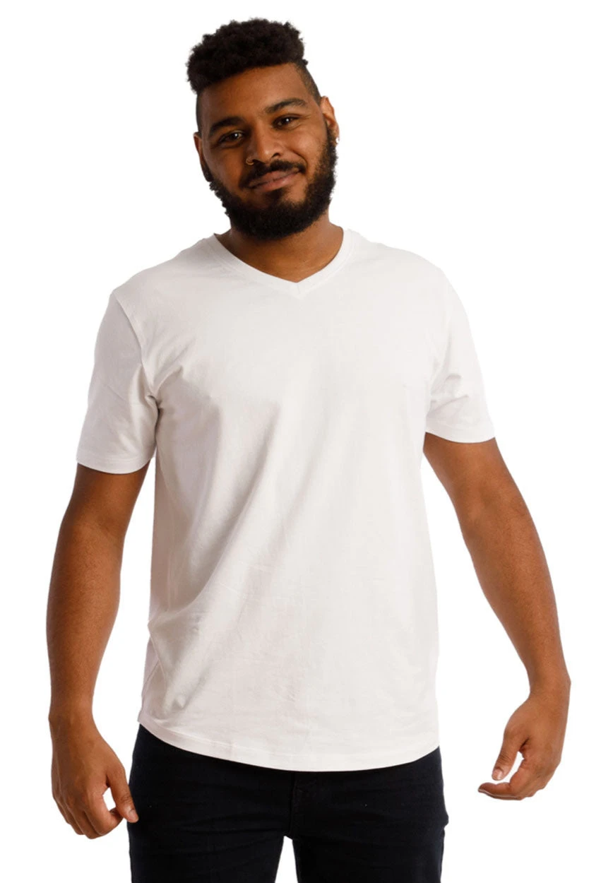 We made the Perfect V-Neck Tee. It’s a bit stretchy, super soft, so damn comfortable, and fits your arms, biceps, pecks (or man-boobs) and abs (or beer belly) just right. We paid attention to the quality and fit details.