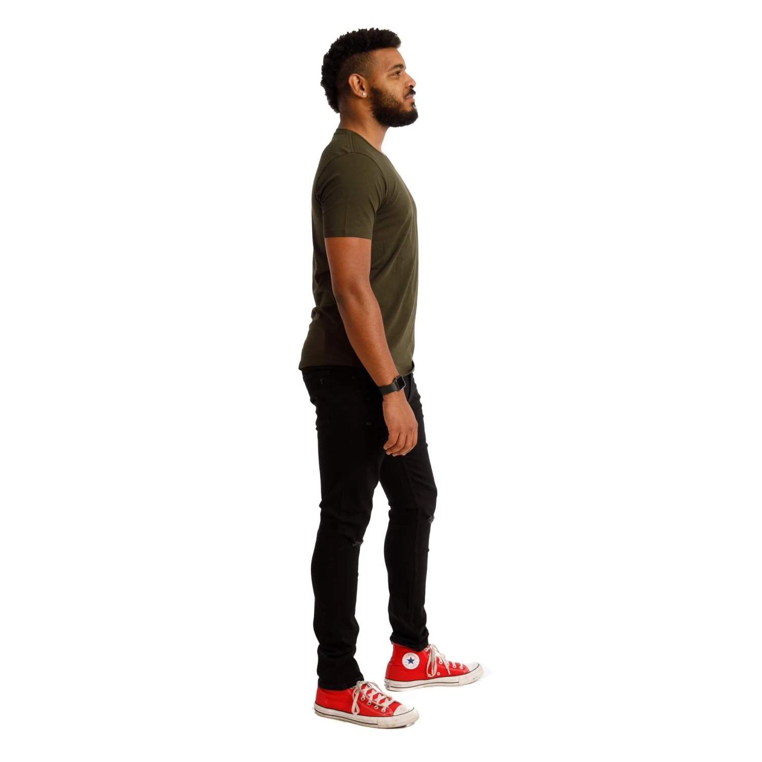 Our tee is made from organic cotton with a 180 GSM weight (high quality) with 5% spandex to stretch for comfort and looks.