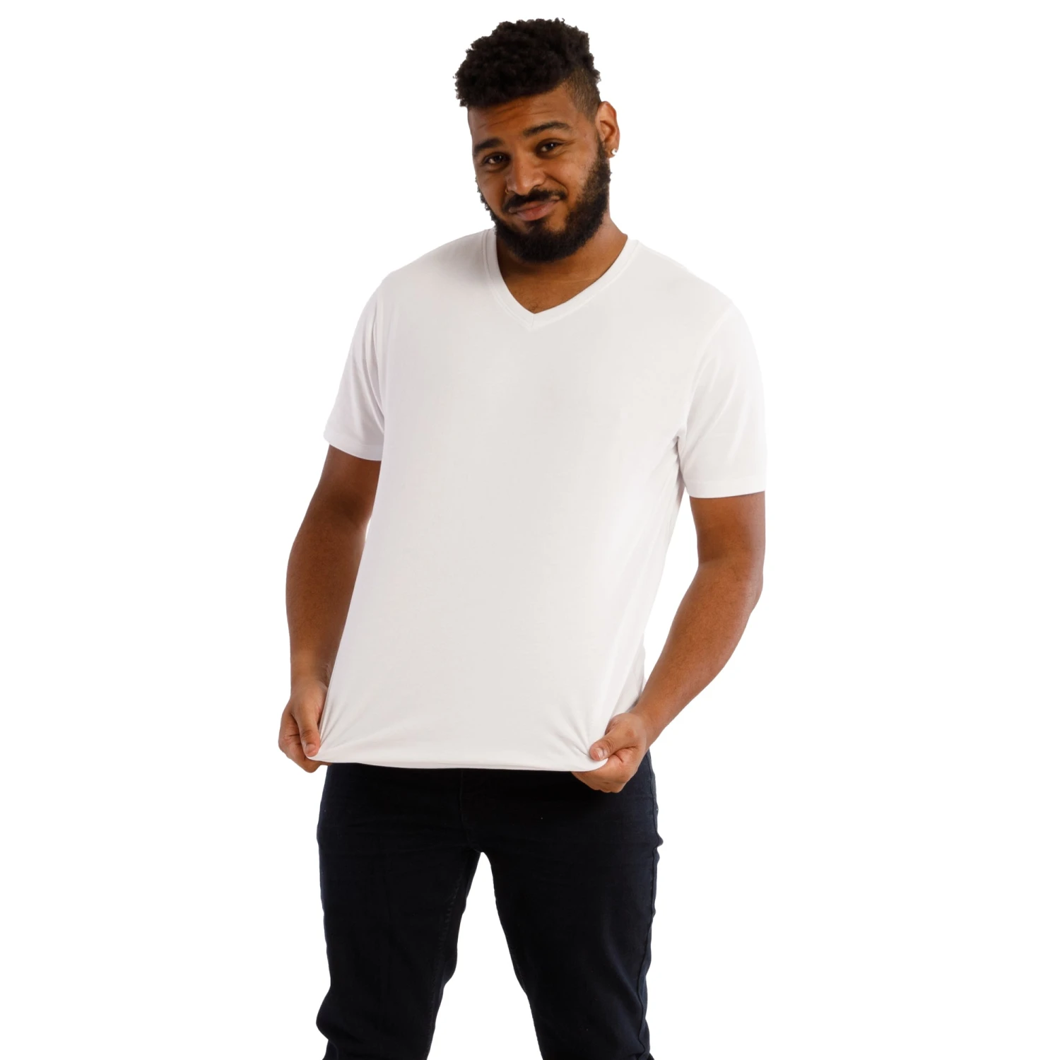 We made the Perfect V-Neck Tee. It’s a bit stretchy, super soft, so damn comfortable, and fits your arms, biceps, pecks (or man-boobs) and abs (or beer belly) just right. We paid attention to the quality and fit details.