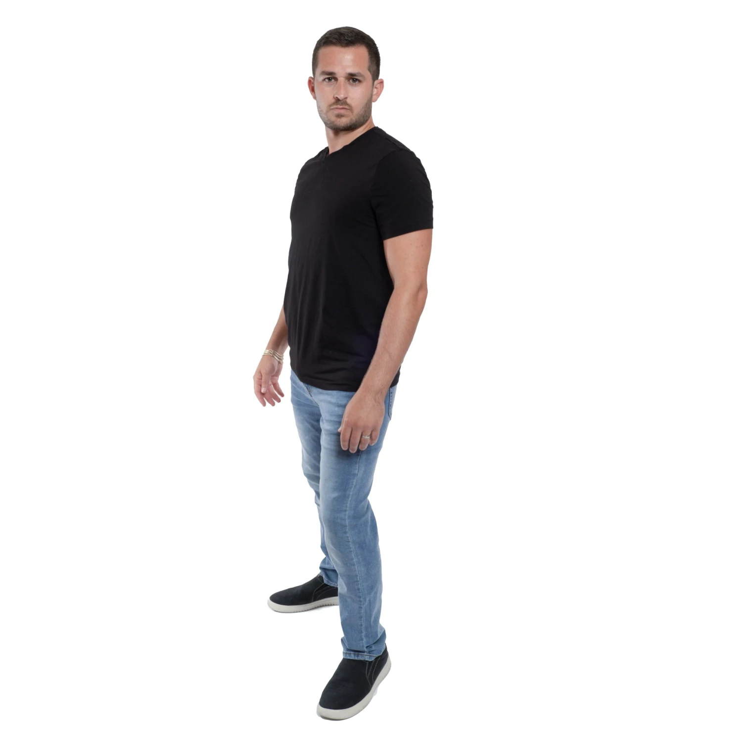 Made from our special stretch SUSTAINABLE fabric, Sky evokes bright days, clear blues, and a bright future. We’ve used BCI cotton and modified the synthetic fibers to be made from RECYCLED plastic bottles. Yes, he’s a light blue wash with mild distressing, but on the inside, he’s green as f#!k. Same stretch, same hand-feel… you just also saved the world a wee bit.